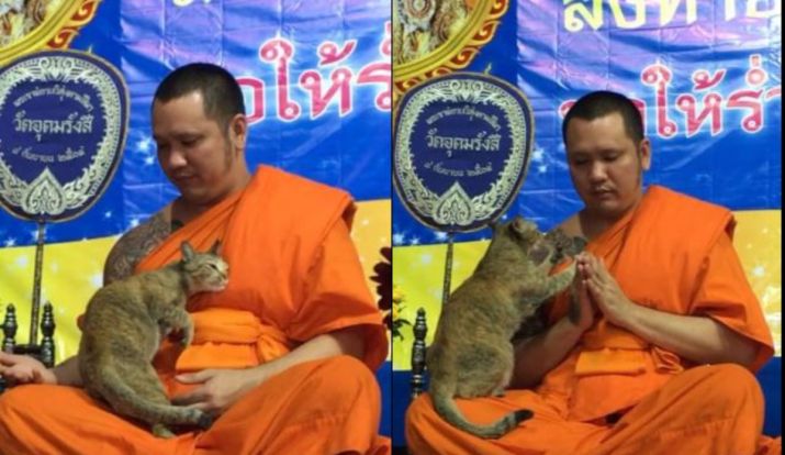 ജപത്തില് ശ്രദ്ധിച്ചിരുന്ന സന്യാസി ആദ്യമൊക്കെ പൂച്ചയെ മാറ്റാന് ശ്രമിച്ചെങ്കിലും അത് പോയതേയില്ല. കൂടുതല് ഇണക്കം കാണിച്ച് ദേഹത്തേക്ക് കയറിപ്പറ്റി സൂക്തങ്ങള് വായിയ്ക്കാന് പോലും തടസ്സമായി നിന്നതോടെ ജപമൊക്കെ നിര്ത്തി സന്യാസി അതിനെ താലോലിക്കാന് തുടങ്ങി. ‘സൂക്തങ്ങള് ജപിക്കാനാണ് ഞാന് ശ്രമിച്ചുകൊണ്ടിരുന്നത് പക്ഷേ കഴിഞ്ഞില്ല. എന്റെ ശ്രദ്ധ മുഴുവന് പൂച്ചയിലായിക്കഴിഞ്ഞിരുന്നു’. ഇരുപത്തഞ്ചുകാരനായ സന്യാസി ലുവാങ് പി കോംകൃത് തയിചചടൊ പറഞ്ഞു.