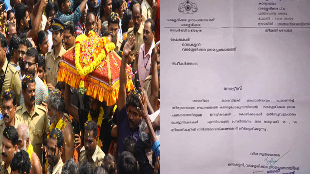 വര്ഷങ്ങള്ക്ക് മുമ്പ് ഘോഷയാത്രക്കിടെ തീര്ത്ഥാടകര് കുളിക്കുമ്പോള് നദയില് അറവു മാലിന്യങ്ങളും അവശിഷ്ടങ്ങളും പൊന്തിയ സംഭവം നടന്നിരുന്നു. അന്നു മുതലാണ് എല്ലാ വര്ഷവും ഇത്തരത്തിലൊരു നിര്ദ്ദേശം നല്കുന്നതെന്നാണ് പഞ്ചായത്ത് സെക്രട്ടറിയുടെ വിശദീകരണം. ഘോഷയാത്ര കടന്ന് പോയതിന് പിന്നാലെ കടകളെല്ലാം തുറക്കാറാണ് പതിവെന്നും പഞ്ചായത്ത് പ്രസിഡണ്ട് ഷാജി മാലപ്പള്ളിയും സെക്രട്ടറി ജ്യോതിയും വിശദീകരിക്കുന്നു.