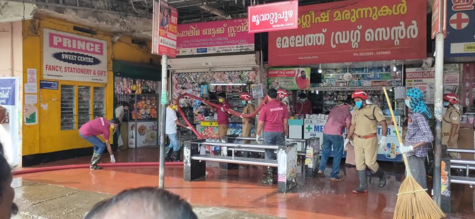 കോതമംഗലം പ്രൈവറ്റ് ബസ് സ്റ്റാൻഡിലെയും പരിസര ഭാഗങ്ങളിലെയും പ്ലാറ്റഫോംകളും കാത്തിരിപ്പ് കേന്ദ്രങ്ങളും ,കംഫോർട്ട് സ്റ്റേഷനുകളും, ഫൂട്ട് പാത്തുകളും ഓടകളും സേവാകിരൺ – സേവാഭാരതി പ്രവർത്തകരും ഫയർ ഫോഴ്സ് – മുനിസിപ്പാലിറ്റി ഉദ്ധ്യോഗസ്ഥരും ചേർന്ന് സാനിറ്റൈസെഷൻ ചെയ്തു…..
