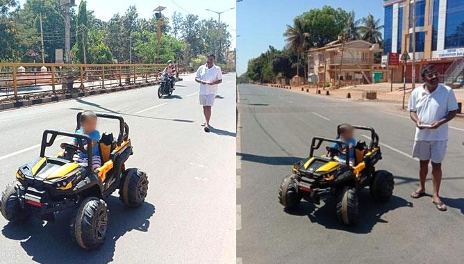 Watch: Karnataka MLA defies the curfew & takes his grandson out on a toy car. Cops remain mute spectators.