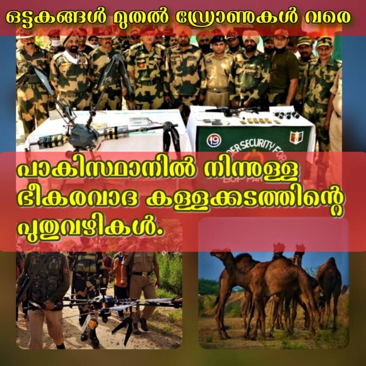 മയക്കുമരുന്നുകളും ആയുധങ്ങളും മുതൽ സ്വർണ്ണവും പണവും വരെ അതിർത്തികടത്തി ഇന്ത്യയിലെത്തിക്കാൻ കള്ളക്കടത്തുകാരും അവരെ സഹായിക്കുന്ന പാകിസ്ഥാനിലെ സൈനിക ഭീകര സാമ്പത്തികശൃംഖലയും ആട്ടിൻ പറ്റത്തെ മുതൽ ഒട്ടകങ്ങളെ വരെ ആശ്രയിച്ചിട്ടുണ്ട്. ഒട്ടകങ്ങളുടെ പുറത്ത് ആരുമറിയാത്ത രീതിയിൽ മയക്കുമരുന്നുകളും ആയുധങ്ങളും കെട്ടിവച്ച് താർ മരുഭൂമിയിലൂടെ അവരെ ഇന്ത്യയിലെത്തിക്കുകയായിരുന്നു ഒരു സമയത്ത് പാകിസ്ഥാൻ ഭീകരരും കള്ളക്കടത്തുകാരും ചെയ്തിരുന്നത്. ഇന്നത് ഡിപ്ളോമാറ്റിക് പാക്കേജ് വരെയെത്തിനിൽക്കുന്നെങ്കിലും അതിർത്തിയിൽ അതിന് സഹായകമാകുന്നത് ഇപ്പോൾ ഡ്രോണുകളാണ്.