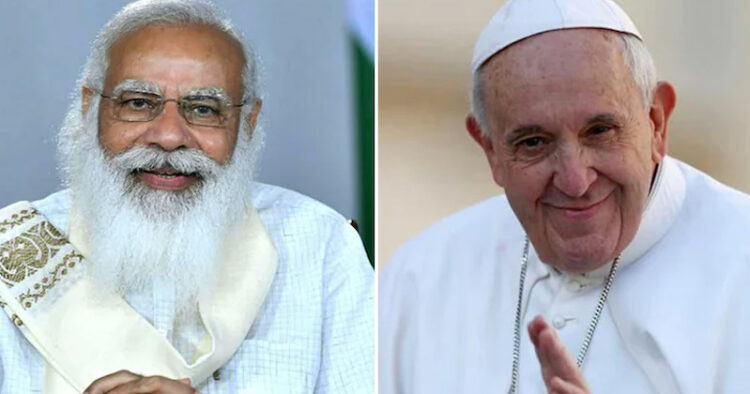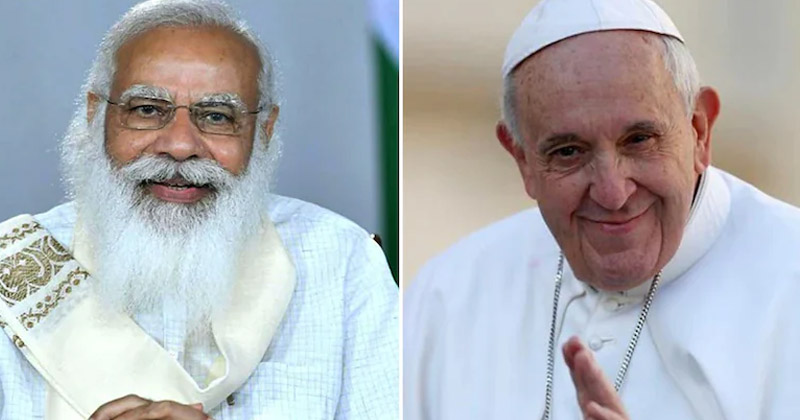 ഡൽഹി: ഇന്ത്യൻ പ്രധാനമന്ത്രി നരേന്ദ്ര മോദി ഇന്ന് മാർപ്പാപ്പയുമായി കൂടിക്കാഴ്ച നടത്തും. 2000ൽ അടൽ ബിഹാരി വാജ്പേയി മാർപ്പാപ്പയെ സന്ദർശിച്ച ശേഷം ഇത് ആദ്യമായാണ് ഒരു ഇന്ത്യൻ പ്രധാനമന്ത്രി വത്തിക്കാനിൽ വച്ച് മാർപ്പാപ്പയുമായി കൂടിക്കാഴ്ച നടത്തുന്നത്. ഇതിനു മുമ്പ് മാർപ്പാപ്പയുമായി കൂടിക്കാഴ്ച നടത്തിയിട്ടുള്ള മറ്റ് ഇന്ത്യൻ പ്രധാനമന്ത്രിമാർ ജവഹർലാൽ നെഹ്റു, ഇന്ദിരാ ഗാന്ധി, ഐ കെ ഗുജ്റാൾ എന്നിവരാണ്.