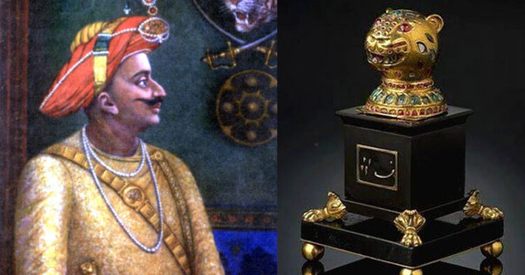 ടിപ്പു സുല്ത്താന്റെ (1782-1799) ആസ്ഥാനമായിരുന്ന ശ്രീരംഗപട്ടണം പിടിച്ചശേഷം, ഈസ്റ്റ് ഇന്ത്യ കമ്പനി അദ്ദേഹത്തിന്റെ സുവര്ണ സിംഹാസനം പൊളിച്ചു കടത്തിയെന്നാണു ചരിത്രരേഖ. ബ്രിട്ടിഷ് രാജാവിനു സിംഹാസനം സമ്മാനിക്കണമെന്ന് അന്നത്തെ ഗവര്ണര് ജനറല് വെല്ലസ്ലി പ്രഭു ആഗ്രഹിച്ചെങ്കിലും യുദ്ധമുതലുകള് വീതിക്കുന്ന പ്രൈസ് കമ്മിറ്റി ഏജന്റുമാര് ഇതു കഷണങ്ങളാക്കി കടത്തി. കടുവയുടെ മുകളില് അഷ്ടകോണ് പീഠമുറപ്പിച്ച നിലയിലുള്ള സിംഹാസനം സ്വര്ണ പാളികള് പൊതിഞ്ഞ് അപൂര്വ രത്നങ്ങള് പതിച്ചതായിരുന്നു. ഇതില് മുന്ഭാഗം അലങ്കരിച്ചിരുന്ന വലിയ കടുവത്തലയും പടവുകളുടെ വശത്തു പതിച്ചിരുന്ന 2 ചെറിയ കടുവത്തലകളുമാണ് അവശേഷിക്കുന്നത്. മൂന്നും സ്വര്ണത്തില് നിര്മിച്ച് രത്നം പതിച്ചവയാണ്. വലിയ കടുവത്തല ബ്രിട്ടിഷ് രാജാവ് ജോര്ജ് മൂന്നാമന്റെ ഭാര്യ ഷാര്ലറ്റ് രാജ്ഞിക്കു ലഭിച്ചത്, വിന്സര് കൊട്ടാരത്തിലുണ്ട്. ചെറുതലകളിലൊന്ന് യുകെയിലെ പോവിസ് കൊട്ടാരത്തിലും രണ്ടാമത്തേത് സ്വകാര്യ വ്യക്തിയുടെ കൈയിലുമാണ്.