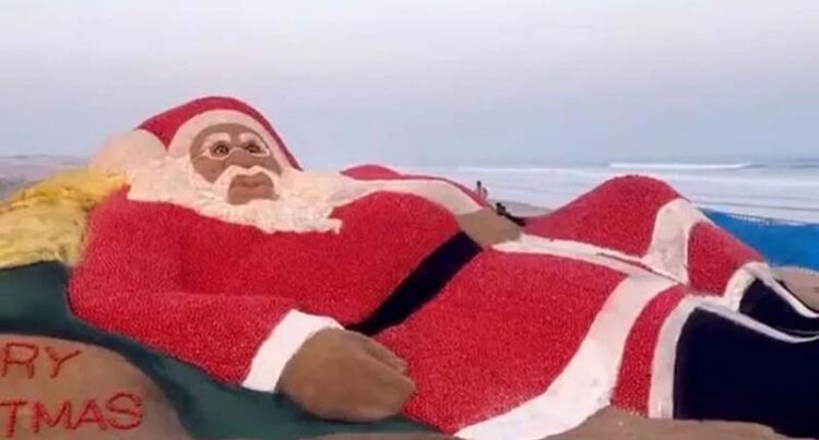 ന്യൂഡൽഹി : പ്രശസ്ത മണൽ കലാകാരനായ സുദർശൻ പട്നായിക് 1500 കിലോ തക്കാളി കൊണ്ട് നിർമ്മിച്ച സാന്താക്ലോസിന്റെ രൂപം വൈറലാകുന്നു. ഒഡീഷയിലെ ഗോപാൽപൂർ ബീച്ചിലാണ് സാന്താക്ലോസിന്റെ ഈ കൂറ്റൻ ശിൽപം ഒരുക്കിയിരിക്കുന്നത് . സാന്താക്ലോസിന് 27 അടി ഉയരവും 60 അടി വീതിയുമുണ്ടെന്ന് സുദർശൻ പറഞ്ഞു .