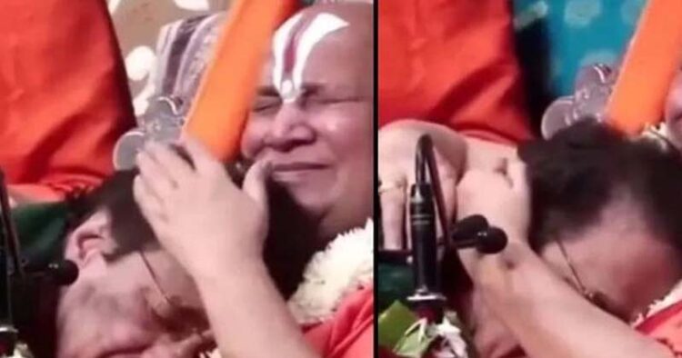 ഈ വീഡിയോയിൽ സ്വാമി ജഗദ്ഗുരു രാമഭദ്രാചാര്യ നടൻ അരുൺ ഗോവിലിനെ കെട്ടിപ്പിടിച്ചു കരയുകയാണ്. ജഗദ്ഗുരു രാമഭദ്രാചാര്യയുടെ സത്സംഗത്തിൽ പങ്കെടുക്കാൻ എത്തിയതാണ് അരുൺ ഗോവിൽ. സ്വാമി ജഗദ്ഗുരു രാമഭദ്രാചാര്യയുടെ പാത പിന്തുടരുകയാണ് അരുൺ ഗോവിൽ പറഞ്ഞിരുന്നു . തുടർന്ന് രാമഭദ്രാചാര്യ അരുൺ ഗോവിലിനെ കെട്ടിപ്പിടിച്ചു, പിന്നീട് അദ്ദേഹത്തിന്റെ കണ്ണുകൾ നിറയാൻ തുടങ്ങി അദ്ദേഹം വളരെ വികാരാധീനനായി.
