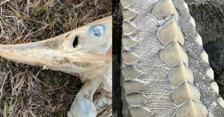 ശനിയാഴ്ച നടക്കാൻ ഇറങ്ങിയപ്പോഴാണ് ടമി മെയ് എന്നയാൾ എന്തോ കരയ്ക്കടിഞ്ഞ് കിടക്കുന്നത് കണ്ടത്. അടുത്ത് ചെന്ന് നോക്കിയപ്പോൾ ഞെട്ടിപ്പോയി. ദിനോസറുകളുടേത് എന്ന് തോന്നിക്കുന്ന ശരീരപ്രകൃതമായിരുന്നു ആ മത്സ്യത്തിന്. തുടർന്ന് അധികൃതരെ വിവരം അറിയിച്ചു. ഗവേഷകരെത്തി നടത്തിയ പരിശോധനയിലാണ് ഇത് ഗൾഫ് സ്റ്റർജനാണെന്ന് വ്യക്തമായത്.