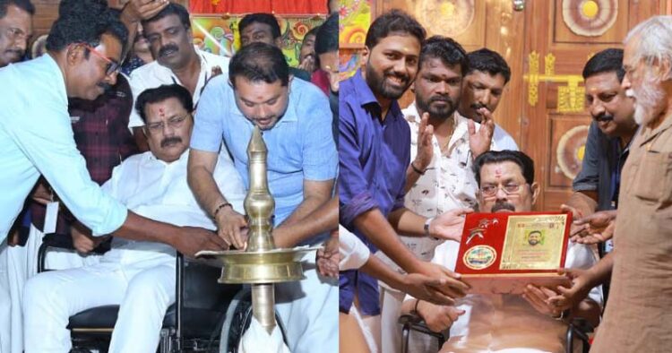 അടൂർ: നിറഞ്ഞ ചിരിയോടെ ജഗതി ശ്രീകുമാർ. കാൽ തൊട്ടുവന്ദിച്ച് ഉപഹാരം വാങ്ങി മേപ്പടിയാൻ സംവിധായകൻ വിഷ്ണു മോഹൻ. അടൂർ ചൂരക്കോട് ഇലങ്കത്തിൽ ശ്രീ ഭദ്രകാളി ക്ഷേത്രത്തിൽ നടന്ന ചടങ്ങിലായിരുന്നു ആരാധകർ പ്രതീക്ഷയോടെ കാത്തിരിക്കുന്ന താരം വീണ്ടും പൊതുവേദിയിൽ എത്തിയത്.