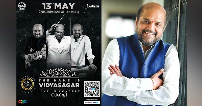 തൻ്റെ സംഗീത സപര്യക്ക് 25 വർഷം തികയുമ്പോൾ ആദ്യമായി ഒരു മ്യൂസിക് കോൺസർട്ടിനു ഒരുങ്ങുകയാണ് വിദ്യാസാഗർ. കൊക്കേഴ്സ് മീഡിയയും നോയിസ് & ഗ്രൈൻസും ചേർന്നാണ് കേരളത്തിൽ ഇതിന് വേദി ഒരുക്കുന്നത്. മെയ് മാസം 13ന് ആണ് അഡ്ലക്സ് കൺവെൻഷൻ സെന്ററിലാണ് പരിപാടി നടക്കുക. വിദ്യാസാഗർ വളരെ അപൂർവമായി മാത്രമാണ് ഇത്തരം ലൈവ് പരിപാടികൾക്ക് ഒരുങ്ങുന്നത് അതും ആദ്യമായാണ് കേരളത്തിൽ എന്നതൊക്കെയും ഈ പരിപാടിക്ക് കൂടുതൽ ശ്രദ്ധ നൽകുന്നു. എന്നും മനസ്സിൽ നിൽക്കുന്ന ഈണങ്ങൾ സമ്മാനിച്ച ഇതിഹാസത്തെ കാണാൻ കാത്തുനിൽക്കുകയാണ് എല്ലാവരും, അതിനൊരു അവസരം എന്ന് മാത്രമല്ല ഇത്രകാലം നമ്മളെ എല്ലാവരെയും കൊതിപ്പിച്ചു സംഗീത മാധുര്യം നേരിട്ട് അനുഭവിക്കാനും കഴിയും. ടിക്കറ്റ് ബുക്കിങ് ആരംഭിച്ച പരിപാടിയുടെ കുടുതൽ വിവരങ്ങൾക്ക് https://insider.in/the-name-is-vidyasagar-live-in-concert-cochin-may13-2023/event എന്ന വെബ് സൈറ്റിലൂടെ അറിയാം