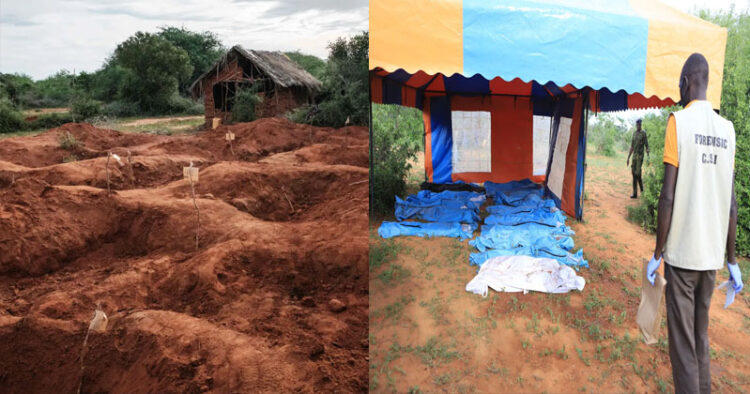 ഇവിടെ നിന്ന് കുഴിമാടങ്ങളും കണ്ടെത്തിയിട്ടുണ്ട്. ആഴം കുറഞ്ഞ കുഴി കുത്തി മൂടിയ നിലയിലായിരുന്നു മൃതദേഹങ്ങൾ. പ്രദേശത്തിന് സമീപത്ത് നിന്നും 112ഓളം പേരെ കാണാതായതായി റിപ്പോർട്ടുകളുണ്ട്. എന്നാൽ കണ്ടെത്താനുള്ളവരുടെ എണ്ണം 200 കടക്കുമെന്ന് കെനിയ റെഡ്ക്രോസ് പറഞ്ഞു. മക്കെൻസിയുടെ വിശ്വാസത്തിൽ പെട്ടവർ ഇനിയും ഉണ്ടെന്നും, ഇവരെ കണ്ടെത്താനുള്ള തിരച്ചിൽ ആരംഭിച്ചുവെന്നും പോലീസ് പറഞ്ഞു. മരിച്ചവരെ കുഴിച്ചിട്ടത് ആരാണെന്ന് കണ്ടെത്താനുള്ള ശ്രമവും പോലീസ് നടത്തുന്നുണ്ട്. അതേസമയം തന്റെ മേൽ ആരോപിക്കപ്പെട്ട കുറ്റങ്ങൾ മക്കെൻസി നിഷേധിച്ചു. 2019ൽ തന്നെ ഈ സംഘടനയെ പിരിച്ച് വിട്ടതാണെന്നാണ് ഇയാളുടെ വാദം.