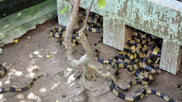 ‘എവിടെത്തിരിഞ്ഞൊന്ന് നോക്കിയാലും അവിടെല്ലാം പൂത്ത മരങ്ങള് മാത്രം’, ഗാര്ഡന് എന്ന് കേള്ക്കുമ്പോള് ചങ്ങമ്പുഴയുടെ ഈ വരികള് ഓര്ക്കുന്നതില് തെറ്റില്ല. പക്ഷേ വിയറ്റ്നാമിലെ ഡോങ് താം ഫാമിനെ കുറിച്ച് പറയുമ്പോള്, വരികള് മാറ്റിയെഴുതേണ്ടി വരും. എവിത്തിരിഞ്ഞൊന്ന് നോക്കിയാലും അവിടെല്ലാം ചുറ്റിപ്പിണഞ്ഞ് കിടക്കുന്ന പാമ്പുകള് മാത്രം! ഇപ്പറഞ്ഞത് സത്യമാണെന്ന് മനസ്സിലാക്കാന് മുകളില് കൊടുത്ത ഒരു ഫോട്ടോ മാത്രം മതി. ഒരു അസ്സല് ‘സ്നേക്സ് ഗാര്ഡന്’ എന്ന് വേണമെങ്കില് ഈ ഫാമിനെ വിളിക്കാം, കാരണം കുറ്റിച്ചെടികളിലും നീര്ച്ചാലുകളിലും മരങ്ങളിലും നിലത്തുമെല്ലാം പാമ്പുകള് ഒന്നിനു മീതെ ഒന്നായി അട്ടിക്കട്ടിയായി കിടക്കുകയാണ്.