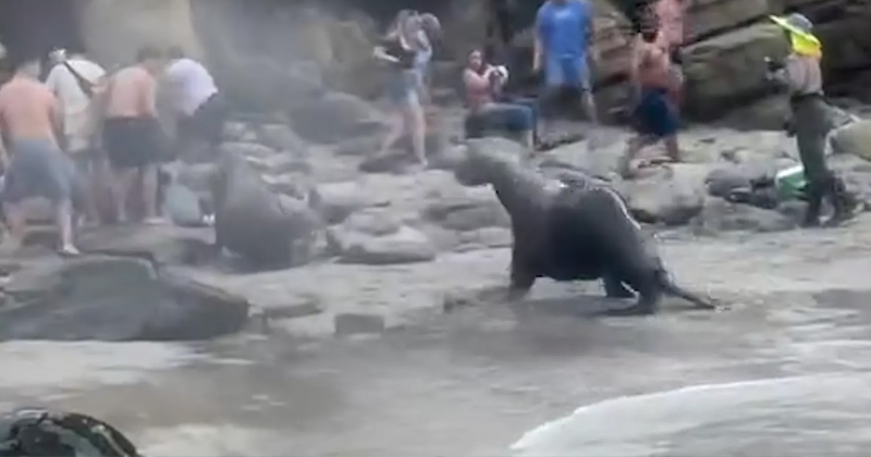 Video shows a sea lion charging at tourists in La Jolla, California on Sunday pic.twitter.com/RlNa7l1L74— MassiVeMaC (@SchengenStory) July 25, 2023