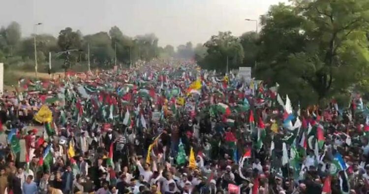 ആദ്യം ഇസ്ലാമാബാദിലെ അതീവ സുരക്ഷാ നയതന്ത്ര എൻക്ലേവിലുള്ള യുഎസ് എംബസിയിലേക്ക് ജമാഅത്തെ ഇസ്ലാമി പാർട്ടി മാർച്ച് പ്രഖ്യാപിച്ചത്. എന്നാൽ പിന്നീട് ഈ തീരുമാനം മാറ്റി,തെരുവിൽ പ്രതിഷേധിക്കുകയായിരുന്നു.