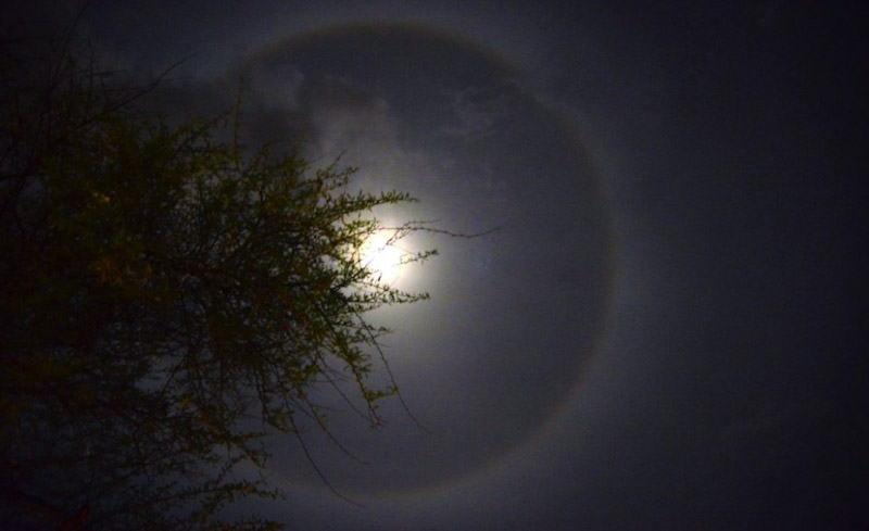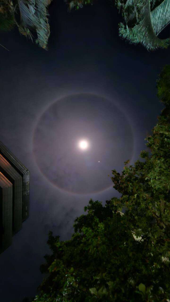 കേരളത്തിലെ വിവിധ ഇടങ്ങളിൽ ചന്ദ്രന് ചുറ്റും പ്രത്യേക വലയം രൂപപ്പെടുന്ന ലൂണാർ ഹാലോ ദൃശ്യമായി. വെള്ളിയാഴ്ച രാത്രി ഏകദേശം 9 മണിയോടുകൂടിയാണ് ചന്ദ്രന് ചുറ്റും പ്രത്യേക വലയം രൂപപ്പെട്ടത്. ഇന്ത്യയിലും മറ്റു വിവിധ രാജ്യങ്ങളിലും ഈ വലയം ദൃശ്യമായി.