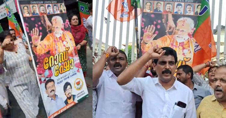 അപകടകരമായി ഫ്ളക്സ് ബോർഡുകൾ സ്ഥാപിച്ചുവെന്ന് പറഞ്ഞായിരുന്നു നീക്കം. സംഭവത്തെ തുടർന്ന് മോദിജിയെ സ്വാഗതം ചെയ്യുന്ന ഫ്ളക്സ് ബോർഡുമായി ബിജെപി പ്രവർത്തകർ പ്രതിഷേധ പ്രകടനം നടത്തി. കോർപ്പറേഷൻ ഓഫീസിന് മുൻപിൽ ഫ്ളക്സ് ബോർഡും ബിജെപിയുടെ കൊടിയും സ്ഥാപിക്കുകയും ചെയ്തു.