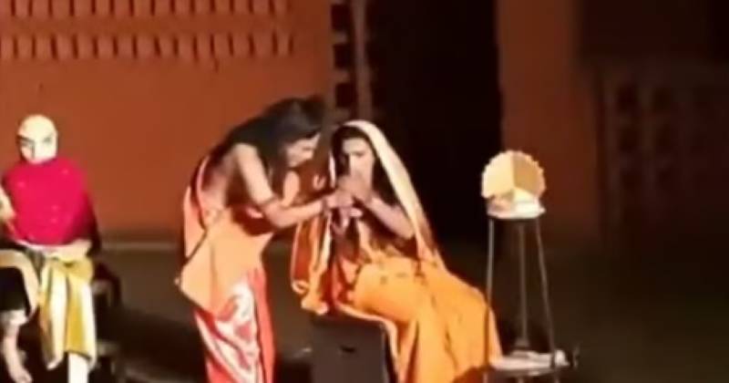 പ്രഥമ വിവര റിപ്പോർട്ട് (എഫ്ഐആർ) അനുസരിച്ച്, സീതയുടെ വേഷം ചെയ്യുന്ന ഒരു പുരുഷ നടൻ പുകവലിയിൽ ഏർപ്പെടുന്നതും നിന്ദ്യമായ ഭാഷ ഉപയോഗിക്കുന്നതും നാടകത്തിൽ കാണാം.