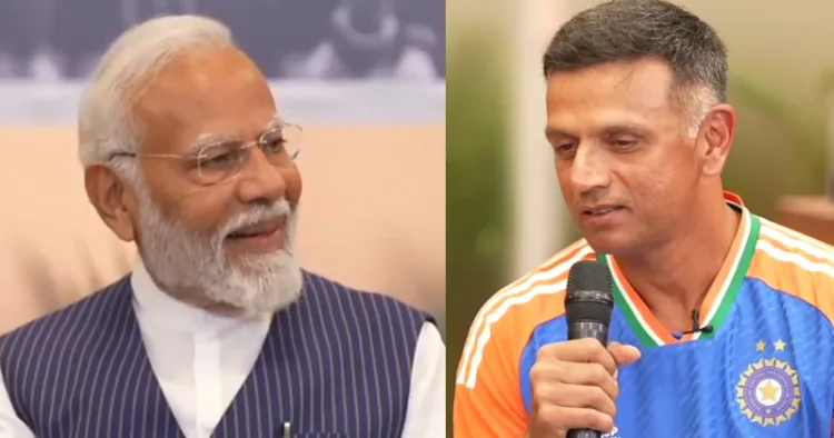ന്യൂഡൽഹി: പ്രധാനമന്ത്രി നരേന്ദ്ര മോദിയെ കാണാൻ കഴിഞ്ഞതിലുള്ള സന്തോഷം പ്രകടമാക്കി ഇന്ത്യൻ ക്രിക്കറ്റ് ടീം കോച്ച് രാഹുൽ ദ്രാവിഡ്. ടി 20 ലോകകപ്പ് വിജയത്തിന് പിന്നാലെ പ്രധാനമന്ത്രിയുമായുള്ള കൂടിക്കാഴ്ചയ്ക്കിടെ ആയിരുന്നു അദ്ദേഹത്തിന്റെ പ്രതികരണം. മത്സരത്തിനിടെ ഉണ്ടായ അനുഭവങ്ങളും രാഹുൽ പ്രധാനമന്ത്രിയുമായി പങ്കുവച്ചു.