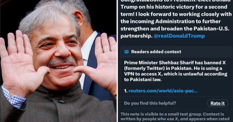 രാജ്യത്ത് നിരോധിച്ച സോഷ്യൽമീഡിയ പ്ലാറ്റ്ഫോമായ എക്സിലൂടെയാണ് പാക് പ്രധാനമന്ത്രി ട്രംപിനെ അഭിനന്ദിച്ചത്. ട്രംപിനെ അഭിനന്ദിക്കുന്നതിനായി എക്സ് ആക്സസ് ചെയ്യാൻ പ്രധാനമന്ത്രി ഷെരീഫ് വിപിഎൻ ഉപയോഗിച്ചതായി ആളുകൾ ചൂണ്ടിക്കാട്ടി. രാജ്യത്ത് നിരോധിച്ച ഒരു ആപ്പ് വഴി പ്രധാനമന്ത്രി രാജ്യാന്തര ശ്രദ്ധ നേടുന്ന പോസ്റ്റ് ഇട്ടത് ഇതോടെ ചർച്ചയാവുന്നുണ്ട്. ജനങ്ങൾക്ക് ഒരു നീതിയും നിയമവും ഭരണതലപ്പത്ത് ഉള്ളവർക്ക് മറ്റൊന്ന് എന്നതാണോ പാകിസ്താനിലെ ജനാധിപത്യമെന്നാണ് ആളുകൾ ചോദിക്കുന്നത്.