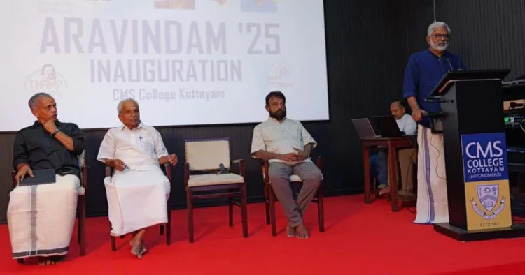 കോട്ടയം: അരവിന്ദനോർമ്മകളുടെ തമ്പായി മാറിയ അരവിന്ദം നാഷണൽ ഷോർട്ട് ഫിലിം ഫെസ്റ്റിന് സിഎംഎസ് കോളജ് കാമ്പസ് തീയറ്ററിൽ തുടക്കം. രാഷ്ട്രീയ വിശകലനങ്ങളോടെ സമൂഹത്തെ സമീപിച്ച ഉത്തരായനത്തോടെയാണ് അരവിന്ദൻ ലോക സിനിമയുടെ അരങ്ങിലേക്ക് മലയാളത്തെ ചേർത്തു നിർത്തിയതെന്ന് അരവിന്ദം ഉദ്ഘാടനം ചെയ്ത് സംവിധായകൻ ബ്ലെസി പറഞ്ഞു. മദ്യം വാങ്ങിത്തരുന്നവർക്ക് മുന്നിൽ സംഗീതത്തെ വിൽക്കേണ്ടി വരുന്ന ഒരു സാഹചര്യം അതിലൂടെ അവതരിപ്പിക്കുന്നു. ഹൃദയത്തിൻ രോമാഞ്ചം സ്വരരാഗ ഗംഗയായ് പകരുന്ന മണിവീണ മൂകമായ് എന്ന മധുരഗാനം പകരുന്നത് ഇത്തരത്തിലുള്ള സാമൂഹ്യ സാഹചര്യങ്ങളെയാണ് മുന്നോട്ടു വയ്ക്കുന്നത്. സാമൂഹ്യ വിമർശനം മുഖമുദ്രയാക്കിയചെറിയ മനുഷ്യരും വലിയ ലോകവും എന്ന വിപുലമായ കാർട്ടൂൺ പരമ്പര അരവിന്ദൻ സിനിമകളുടെ ദിശാസൂചകമാണെന്ന് ബ്ലെസി ചൂണ്ടിക്കാട്ടി.