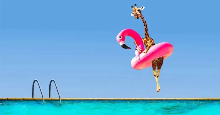 ഒരു ജിറാഫിന് പൊങ്ങിക്കിടക്കാൻ കഴിയും, പക്ഷേ അതിന്റെ തല ഉപരിതലത്തോട് വളരെ അടുത്തായിരിക്കും, കൂടാതെ അതിന്റെ മൂക്ക് വെള്ളതിൽ മുങ്ങാത സൂക്ഷിക്കാൻ അതിന് അൽപ്പം ബുദ്ധിമുട്ടേണ്ടിവരും. ജേണൽ ഓഫ് തിയറിറ്റിക്കൽ ബയോളജിയിൽ പ്രസിദ്ധീകരിച്ച പഠനത്തിൽ, ജിറാഫുകൾക്ക് നീന്താൻ കഴിയുമെന്ന് കണ്ടെത്തി. എന്നിരുന്നാലും, ജിറാഫിന് അതിന്റെ കഴുത്ത് ഒരു മോശം പിന്നോട്ടുള്ള സ്ഥാനത്ത് വളയ്ക്കുകയും കാലുകൾ പിന്നിലേക്ക് ചരിയുകയും ചെയ്യേണ്ടിവരും.