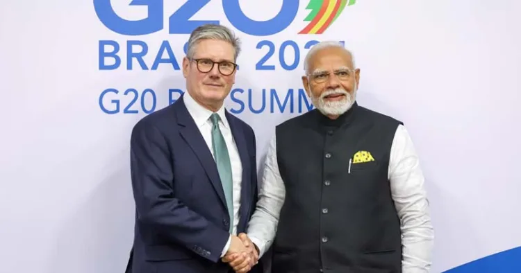 ഏറെ നാളത്തെ കാത്തിരിപ്പിനൊടുവിൽ ഇന്ത്യയും ബ്രിട്ടനും തമ്മിലുള്ള സുപ്രധാന കരാർ യാഥാർത്ഥ്യമാകുന്നു. കരാറിൽ ഒപ്പുവയ്ക്കാനായി പ്രധാനമന്ത്രി നരേന്ദ്ര മോദിയും വാണിജ്യ മന്ത്രി പീയൂഷ് ഗോയലും ബ്രിട്ടനിലേക്ക് തിരിക്കും. യുകെ പ്രധാനമന്ത്രി കെയ്മർ സ്റ്റാർമറിൻറെ ക്ഷണപ്രകാരമാണ് മോദി യുകെ സന്ദർശിക്കുന്നത്.യുകെയിൽ എത്തുന്ന പ്രധാനമന്ത്രി ചാൾസ് രാജാവുമായും കൂടിക്കാഴ്ച നടത്തും.
