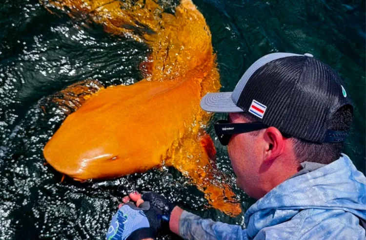 കരീബിയൻ കടലിൽ കണ്ടെത്തിയ ഒരു അത്ഭുത സൃഷ്ടിയാണ് ഇപ്പോൾ ലോകത്തെ അതിശയിപ്പിക്കുന്നത്. നല്ല പഴുത്ത ഓറഞ്ചിന്റെ നിറമുള്ള ഒരു സ്രാവ് ആണ് ജനങ്ങളെ അത്ഭുതപ്പെടുത്തിയിരിക്കുന്നത്. മുഴുവൻ ഓറഞ്ച് നിറമുള്ള ശരീരവും വെളുത്ത കണ്ണുകളും ആണ് ഈ സ്രാവിന്റെ പ്രത്യേകത. കോസ്റ്റാറിക്കയുടെ തീരത്ത് നിന്നാണ് ഈ അത്ഭുത സ്രാവിനെ പിടികൂടിയത്.