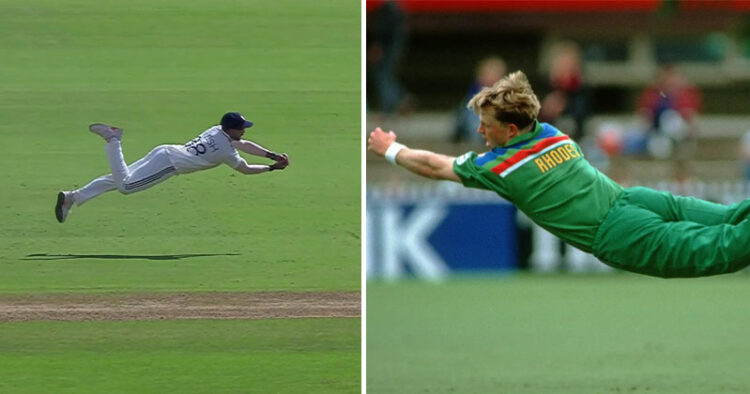 സിറാജിന്റെ പന്തിൽ ടി ചന്ദ്രപോൾ സ്ക്വയർ ലെഗിലേക്ക് ഒരു ഷോട്ട് കളിച്ചു. എന്നാൽ നിതീഷ് അത് അവിശ്വനീയമായി ഒന്നാന്തരം ഡൈവിലൂടെ ചാടി പിടിക്കുക ആയിരുന്നു. ദക്ഷിണാഫ്രിക്കൻ ഇതിഹാസം ജോണ്ടി റോഡ്സിനെ ഓർമിപ്പിക്കുന്നതായിരുന്നു ക്യാച്ച്. ഇതിന്റെ വീഡിയോ ഇപ്പോൾ സോഷ്യൽ മീഡിയയിൽ വൈറലാണ്.