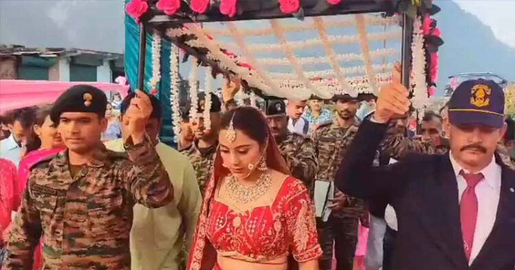 മാതൃരാജ്യത്തെ സംരക്ഷിക്കുന്നതിനിടെ ജീവൻ ബലികൊടുത്ത സൈനികന്റെ സഹോദരിയുടെ വിവാഹം മംഗളമായി നടത്തിക്കൊടുത്ത് സൈനികർ. ഹിമാചൽ പ്രദേശിലാണ് സംഭവം. 2024 ഫെബ്രുവരിയിൽ അരുണാചൽ പ്രദേശിൽ നടന്ന ഓപ്പറേഷൻ അലർട്ടിനിടെയാണ് ആശിഷ് വീരമൃത്യുവരിച്ചത്. ഇദ്ദേഹത്തിന്റെ സഹോദരിയുടെ വിവാഹമാണ് കഴിഞ്ഞ ദിവസം സിർമൗർ ജില്ലയിലെ ദർലിയിൽ വച്ച് നടന്നത്.