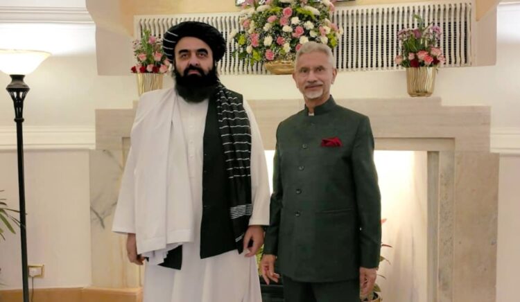 താലിബാൻ വിദേശകാര്യമന്ത്രി അമീർ ഖാൻ മുത്തഖി ഇന്ന് ഇന്ത്യൻ വിദേശകാര്യ മന്ത്രി എസ് ജയശങ്കറുമായി കൂടിക്കാഴ്ച നടത്തി. കാബൂളിലെ എംബസി വീണ്ടും തുറക്കാൻ ഇന്ത്യ ഒരുങ്ങുകയാണെന്ന് എസ് ജയശങ്കർ അറിയിച്ചു. അഫ്ഗാനിസ്ഥാന്റെ നിയന്ത്രണം താലിബാൻ ഏറ്റെടുത്തതിനുശേഷം ന്യൂഡൽഹിയും കാബൂളും തമ്മിലുള്ള ഏറ്റവും ഉയർന്ന തലത്തിലുള്ള ആശയവിനിമയമായിരുന്നു പിന്നെ ഇന്ത്യൻ വിദേശകാര്യ മന്ത്രിയും അഫ്ഗാനിസ്ഥാൻ വിദേശകാര്യ മന്ത്രിയും തമ്മിൽ നടത്തിയത്.