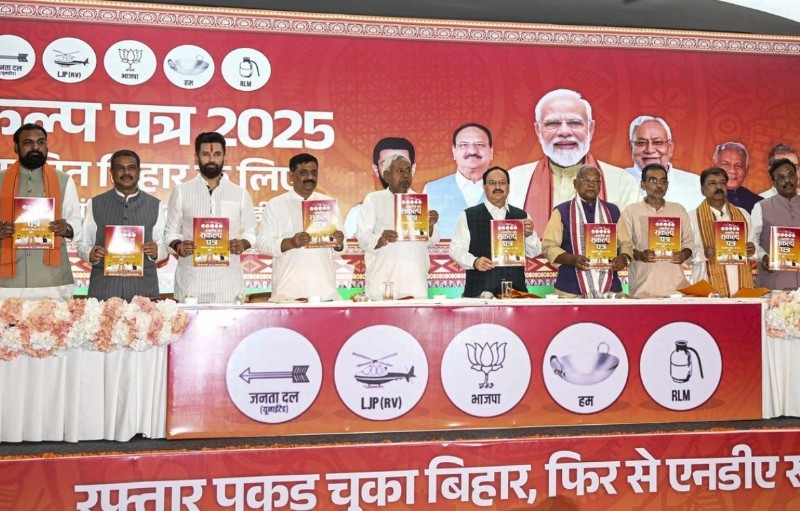 പട്ന : ബീഹാർ തിരഞ്ഞെടുപ്പിനു മുന്നോടിയായി 25 പോയിന്റുകൾ അടങ്ങുന്ന സംയുക്ത പ്രകടന പത്രിക പുറത്തിറക്കി നാഷണൽ ഡെമോക്രാറ്റിക് അലയൻസ് (എൻഡിഎ). എൻഡിഎയിലെ എല്ലാ ഘടകകക്ഷികളിലെയും പ്രമുഖ നേതാക്കൾ ഒത്തുചേർന്നാണ് “സങ്കൽപ് പത്ര 2025” എന്ന പ്രകടന പത്രിക പുറത്തിറക്കിയിരിക്കുന്നത്. വികസിത ബീഹാറിനുള്ള ഒരു ബ്ലൂപ്രിന്റ് എന്നാണ് എൻഡിഎ പ്രകടന പത്രികയെ വിശേഷിപ്പിച്ചത്.