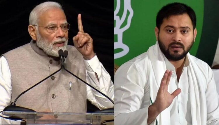 മുഴുവൻ കുടുംബവും തിരഞ്ഞെടുപ്പിൽ മത്സരിക്കുമ്പോൾ പിതാവിന്റെ പേരും മുഖവും മറയ്ക്കേണ്ടതിന്റെ ആവശ്യകത എന്താണ്. പൊതുജനങ്ങളിൽ നിന്ന് മറച്ചുവെക്കേണ്ട തെറ്റുകൾ ചെയ്തിട്ടുണ്ട് എന്ന് അവർക്ക് അറിയാം. കോൺഗ്രസിനെയും പോസ്റ്ററുകളിൽ നിന്നും കൃത്യമായി ഒഴിവാക്കിയിട്ടുണ്ട്. ആർജെഡി കോൺഗ്രസിനെ പേരിൽ മാത്രമാണ് നിലനിർത്തിയിരിക്കുന്നത്. കോൺഗ്രസ് നേതാക്കൾ തന്നെ ആർജെഡിയുടെ വാഗ്ദാനങ്ങളിൽ വിശ്വസിക്കുന്നില്ല, എന്നും പ്രധാനമന്ത്രി മോദി പറഞ്ഞു.
