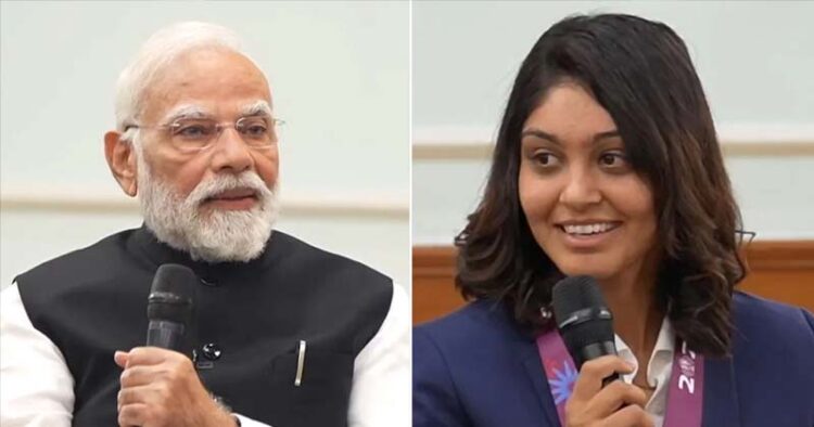 സർ അങ്ങയുടെ ചർമ്മം എപ്പോഴും തിളങ്ങുന്നതാണ്. ദയവായി ചർമ്മസംരക്ഷണ ദിനചര്യ എന്താണെവ്വ് പറയാമോ? ഹർലിന്റെ അപ്രതീക്ഷിത ചോദ്യം പ്രധാനമന്ത്രി ഉൾപ്പെടെ എല്ലാവരെയും ചിരിപ്പിച്ചു. ഹാർലിന്റെ ചോദ്യത്തിന് പുഞ്ചിരിയോടെ ‘ഞാൻ അതൊന്നും ചിന്തിക്കാറേയില്ലെന്ന്’ പ്രധാനമന്ത്രി മറുപടി നൽകി. രാജ്യത്തെ ജനങ്ങളുടെ സ്നേഹമാണ് പ്രധാനമന്ത്രിയെ തിളക്കമുള്ളതാക്കുന്നത് എന്ന് ഓൾറൗണ്ടർ റാണ പറഞ്ഞപ്പോൾ, തീർച്ചയായും അങ്ങനെയാണ്. അത് ശക്തിയുടെ ഒരു വലിയ ഉറവിടമാണെന്ന് മോദി പറഞ്ഞു.
