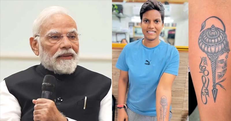 പ്ലെയർ ഓഫ് ദി ടൂർണമെന്റായ ദീപ്തിശർമ്മയുടെ കയ്യിലെ ടാറ്റൂവിനെ കുറിച്ച് മോദി ചോദിക്കുകയുണ്ടായി.നിങ്ങളുടെ കൈയിൽ ഹനുമാൻ സ്വാമിയുടെ ടാറ്റൂ ഉണ്ടല്ലോ, അത് നിങ്ങളെ ഏതെങ്കിലും വിധത്തിൽ സഹായിച്ചിട്ടുണ്ടോ? മോദി ചോദിച്ചു. ‘എന്നിലുള്ളതിനേക്കാൾ കൂടുതൽ വിശ്വാസം ഞാൻ അദ്ദേഹത്തിൽ അർപ്പിക്കുന്നുണ്ട്. എൻറെ പ്രകടനം മെച്ചപ്പെടുത്തുന്നതിൽ അത് വ്യക്തിപരമായി എന്നെ വളരെയധികം സഹായിക്കുന്നുമുണ്ട്. ബുദ്ധിമുട്ടുകൾ മറികടക്കാൻ അതെന്നെ സഹായിക്കുന്നു.ദീപ്തിയുടെ ഇൻസ്റ്റഗ്രാം അക്കൗണ്ടിൽ ജയ് ശ്രീറാം എന്ന് എഴുതിയിട്ടുണ്ടല്ലോ എന്ന മോദിയുടെ ചോദ്യത്തിന് അതേ എന്നായിരുന്നു ദീപ്തിയുടെ മറുപടി.