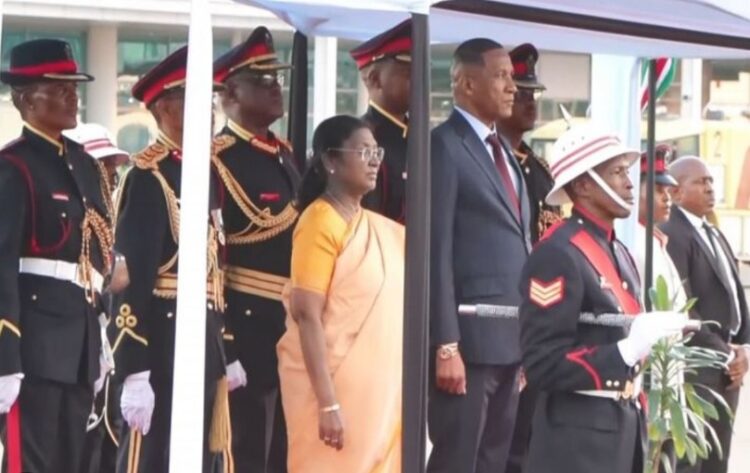 ഗെബറോണി : ഇന്ത്യൻ രാഷ്ട്രപതി ദ്രൗപതി മുർമു ആഫ്രിക്കൻ സന്ദർശനത്തിന്റെ അവസാന ഘട്ടമായി ബോട്സ്വാനയിലെത്തി. ഒരു ഇന്ത്യൻ രാഷ്ട്രപതി ഈ രാജ്യത്തേക്ക് നടത്തുന്ന ആദ്യ ഔദ്യോഗിക സന്ദർശനമാണിത്. ഗെബറോണിയിലെ സർ സെറെറ്റ്സെ ഖാമ അന്താരാഷ്ട്ര വിമാനത്താവളത്തിൽ 21 ഗൺ സല്യൂട്ട്, ഗാർഡ് ഓഫ് ഓണർ എന്നിവയോടെ പ്രൗഢഗംഭീരമായ സ്വീകരണം ആണ് ഇന്ത്യൻ രാഷ്ട്രപതിക്ക് ബോട്സ്വാന ഒരുക്കിയിരുന്നത്.