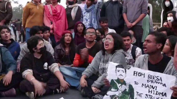 ന്യൂഡൽഹി : ഡൽഹിയിൽ ഞായറാഴ്ച വൈകിട്ട് ഒരു കൂട്ടം യുവാക്കൾ നടത്തിയ പ്രതിഷേധം അക്രമാസക്തമായി. ഇന്ത്യ ഗേറ്റിനു സമീപം നടന്ന പ്രതിഷേധത്തെ തുടർന്ന് പോലീസ് ഇരുപതോളം പേരെ അറസ്റ്റ് ചെയ്തു. ഡൽഹിയിലെ വായുമലിനീകരണത്തിനെതിരെ എന്ന പേരിലായിരുന്നു പ്രതിഷേധം ആരംഭിച്ചിരുന്നത്. എന്നാൽ തുടർന്ന് പ്രതിഷേധക്കാർ കൊല്ലപ്പെട്ട കമ്മ്യൂണിസ്റ്റ് ഭീകരൻ മാദ്വി ഹിദ്മയുടെ പോസ്റ്ററുകൾ ഉയർത്തിപ്പിടിക്കുകയും മുദ്രാവാക്യങ്ങൾ വിളിക്കുകയും ആയിരുന്നു.
