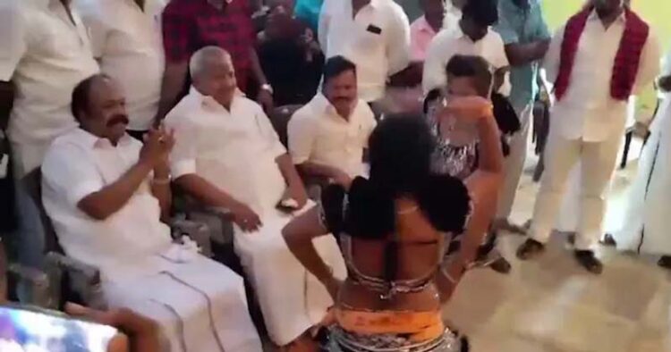 തമിഴ്നാട്ടിൽ മന്ത്രി എസ് പെരിയകറുപ്പൻ വിവാദത്തിൽ. ഉപമുഖ്യമന്ത്രി ഉദയനിധി സ്റ്റാലിന്റെ പിറന്നാളാഘോഷത്തിൽ അൽപ്പവസ്ത്രധാരികളായ പെൺകുട്ടികൾ നടത്തിയ നൃത്തത്തിന് കയ്യടിക്കുന്ന വീഡിയോ ആണ് വിവാദത്തിലായിരിക്കുന്നത്.