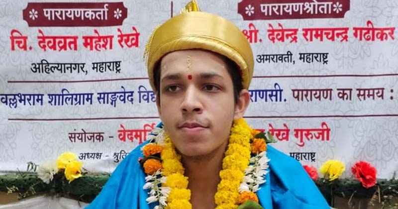ന്യൂഡൽഹി; ശുക്ല യജുർവേദത്തിന്റെ മധ്യാന്ദിനി ശാഖയിലെ 2,000 മന്ത്രങ്ങൾ ഉൾക്കൊള്ളുന്ന ദണ്ഡക്രമ പാരായണം തുടർച്ചയായ 50 ദിവസങ്ങളിലായി പൂർത്തിയാക്കി. 19 വയസ്സുള്ള വേദമൂർത്തി ദേവവ്രത് മഹേഷ് രേഖെയെ പ്രധാനമന്ത്രി നരേന്ദ്ര മോദി പ്രശംസിച്ചു, “വരും തലമുറകൾ ഓർമ്മിക്കുന്ന ഒരു നേട്ടം” എന്നാണ് പ്രധാനമന്ത്രി സംഭവത്തെ വിശേഷിപ്പിച്ചത്.