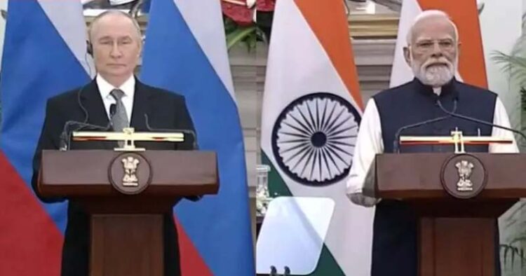 ഭീകരതയ്ക്കെതിരായ പോരാട്ടത്തിൽ ഇന്ത്യയും റഷ്യയും തോളോട് തോൾ ചേർന്ന് നിൽക്കുകയും ഒരുമിച്ച് നടക്കുകയും ചെയ്യുമെന്ന് പ്രധാനമന്ത്രി നരേന്ദ്ര മോദി റഷ്യൻ പ്രസിഡന്റ് വ്ളാഡിമിർ പുടിനുമായി നടത്തിയ സംയുക്ത പ്രസ്താവനയിലാണ് മോദി ഇക്കാര്യം പറഞ്ഞത്. “അത് പഹൽഗാമിലെ ഭീകരാക്രമണമായാലും (ഏപ്രിലിൽ ജെയ്ഷെ-ഇ-മുഹമ്മദ് 26 പേരെ കൊലപ്പെടുത്തി) ക്രോക്കസ് സിറ്റി ഹാളിന് നേരെയുണ്ടായ ഭീരുത്വപരമായ ആക്രമണമായാലും (2024 മാർച്ചിൽ മോസ്കോയിലെ ഒരു കച്ചേരി ഹാളിൽ ഇസ്ലാമിക് സ്റ്റേറ്റ്-ഖൊറാസാൻ ആക്രമണത്തിൽ 149 പേർ കൊല്ലപ്പെട്ടു)…” ഈ സംഭവങ്ങളുടെയെല്ലാം മൂലകാരണം ഒന്നുതന്നെയാണെന്ന് പ്രധാനമന്ത്രി മോദി പറഞ്ഞു.