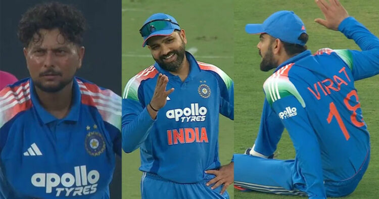 വിക്കറ്റ് വീഴ്ത്തണം എന്ന ദാഹം വളരെ കൂടുതൽ ഉള്ള ബോളർ ആയതിനാൽ തന്നെ പലപ്പോഴും ആവശ്യമുള്ളപ്പോഴും ഇല്ലാത്തപ്പോഴും അപ്പീൽ ചെയ്യുന്ന കുൽദീപിനെ നമ്മൾ കണ്ടിട്ടുണ്ട്. പണ്ട് മുതലേ ഇതൊക്കെ കുൽദീപിന്റെ പതിവ് ആണെന്ന് അറിയാവുന്ന രോഹിതും കോഹ്ലിയും ഇതൊക്കെ ചിരിച്ചു തള്ളുന്നതും നമ്മൾ കാണുന്ന കാര്യമാണ്. ഇന്നത്തെ മത്സരത്തിലും സ്ഥിതി വ്യത്യസ്തമായിരുന്നില്ല.