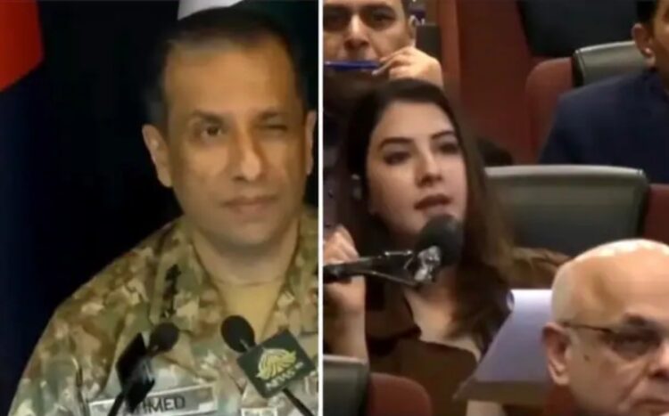 മുൻ പാകിസ്താൻ പ്രധാനമന്ത്രി ഇമ്രാൻ ഖാൻ ദേശീയ സുരക്ഷാ ഭീഷണിയാണ്, രാജ്യവിരുദ്ധനാണ്, ഡൽഹിയുടെ കൈകൾക്ക് വഴങ്ങി പ്രവർത്തിക്കുന്നു, എന്നിങ്ങനെയുള്ള ആരോപണങ്ങൾ ആയിരുന്നു പാകിസ്താൻ സൈനിക വക്താവ് പത്രസമ്മേളനത്തിൽ ഉയർത്തിയത്. ഈ അഭിസംബോധനങ്ങളെ മാധ്യമപ്രവർത്തക ശക്തമായി വിമർശിച്ചപ്പോൾ, ഇമ്രാൻഖാൻ ഒരു മാനസിക രോഗി കൂടിയാണ് എന്ന് പറഞ്ഞുകൊണ്ട് സൈനിക വക്താവ് കണ്ണിറുക്കി അശ്ലീല ആംഗ്യം കാണിക്കുകയായിരുന്നു.