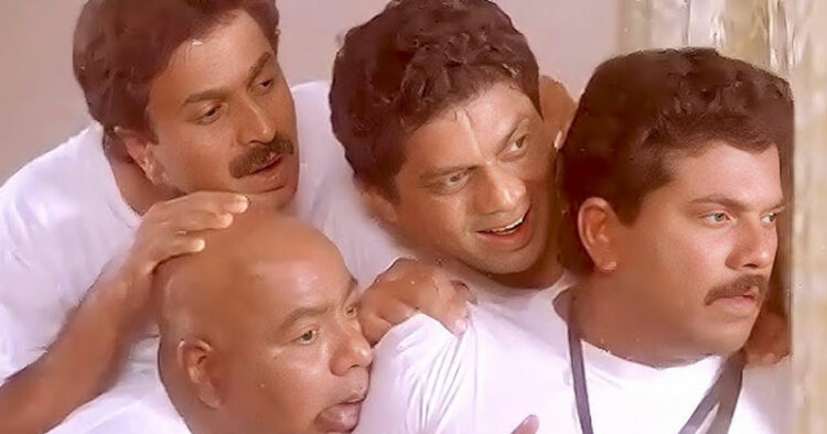 ജഗതിയെ അടിച്ചവശനാക്കി പോലീസ് ഡ്രെസ്സൊക്കെ വലിച്ചെറിയുണ്ട്. ശേഷം കരഞ്ഞുകൊണ്ട് ഒരു പ്രത്യേക രീതിയിലിറങ്ങി വരുന്ന ജഗതിയെ തിലകനും സിദ്ധിക്കും ചേർന്നാണ് എടുക്കുന്നത്.