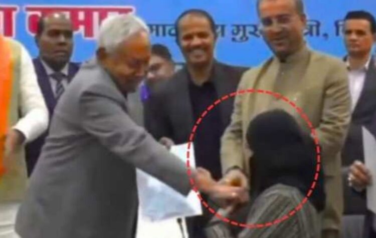 പട്ന : പട്നയിൽ ആയുഷ് ഡോക്ടർമാരുടെ നിയമനക്കത്ത് വിതരണത്തിനിടയിൽ ഹിജാബ് ധരിച്ച് മുഖംമറച്ച് എത്തിയ യുവതിയുടെ മുഖംമൂടി മുഖ്യമന്ത്രി നിതീഷ് കുമാർ മാറ്റി നോക്കിയത് വലിയ വിവാദങ്ങൾക്കാണ് തിരികൊളുത്തിയത്. തീവ്ര ഇസ്ലാമിക വാദികളിൽ നിന്നും ബീഹാർ മുഖ്യമന്ത്രിക്കെതിരെ കടുത്ത വിമർശനം ഉയർന്നിരുന്നു. സംഭവത്തിൽ ഇപ്പോൾ മുഖ്യമന്ത്രി ഹിജാബ് മാറ്റി നോക്കിയ യുവതി ജോലി സ്വീകരിക്കില്ലെന്ന് അറിയിച്ചിരിക്കുകയാണ്.