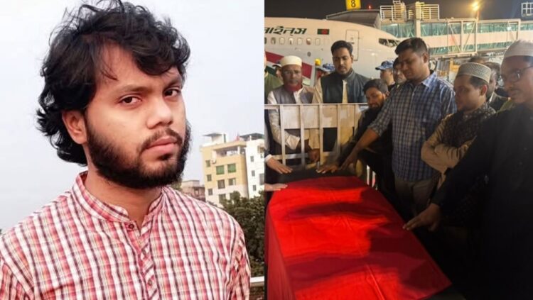 ധാക്ക : ഷെയ്ഖ് ഹസീന വിരുദ്ധ പ്രക്ഷോഭങ്ങളുടെ നേതാവും കടുത്ത ഇന്ത്യ വിരുദ്ധനുമായ ഷെരീഫ് ഉസ്മാൻ ഹാദിയുടെ മൃതദേഹം ബംഗ്ലാദേശിലെത്തിച്ചു. സിംഗപ്പൂരിൽ നിന്നും വെള്ളിയാഴ്ച വൈകുന്നേരമാണ് ധാക്കയിലേക്ക് മൃതദേഹം എത്തിച്ചത്. ഹസ്രത്ത് ഷാജലാൽ അന്താരാഷ്ട്ര വിമാനത്താവളത്തിൽ എത്തിച്ച മൃതദേഹം ദേശീയ പതാകയിൽ പൊതിഞ്ഞാണ് സ്വീകരിച്ചത്. നാളെയാണ് സംസ്കാര ചടങ്ങ് നടത്തുക.