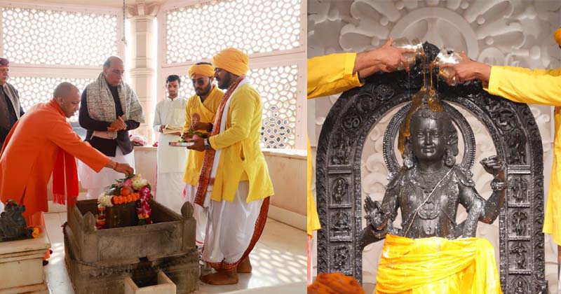 അയോധ്യ: ശ്രീരാമ ജന്മഭൂമി ക്ഷേത്രത്തിൽ ഭക്തിസാന്ദ്രമായ അന്തരീക്ഷത്തിൽ പ്രതിഷ്ഠാ ദ്വാദശി ആഘോഷങ്ങൾ നടന്നു. പുണ്യ ചടങ്ങുകളിൽ കേന്ദ്ര പ്രതിരോധ മന്ത്രി രാജ്നാഥ് സിംഗും ഉത്തർപ്രദേശ് മുഖ്യമന്ത്രി യോഗി ആദിത്യനാഥും പങ്കെടുത്തു. പൂജ്യരായ സന്യാസിമാരുടെയും ധർമ്മാചാര്യന്മാരുടെയും സാന്നിധ്യത്തിൽ നടന്ന ചടങ്ങുകൾ ഭക്തർക്ക് ആത്മീയ അനുഭൂതിയായി.