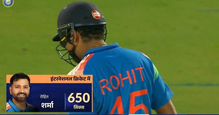അന്താരാഷ്ട്ര ക്രിക്കറ്റിലെ മൂന്ന് ഫോർമാറ്റുകളിലുമായി (ടെസ്റ്റ്, ഏകദിനം, ടി20) 650 സിക്സറുകൾ തികയ്ക്കുന്ന ആദ്യ ക്രിക്കറ്ററാണ് രോഹിത്. സിക്സറുകളുടെ എണ്ണത്തിൽ നിലവിൽ രോഹിത്തിന് പിന്നിലുള്ളത് ക്രിസ് ഗെയ്ലാണ് (553 സിക്സറുകൾ). രോഹിത് ഈ പട്ടികയിൽ ബഹുദൂരം മുന്നിലെത്തിയിരിക്കുന്നു.