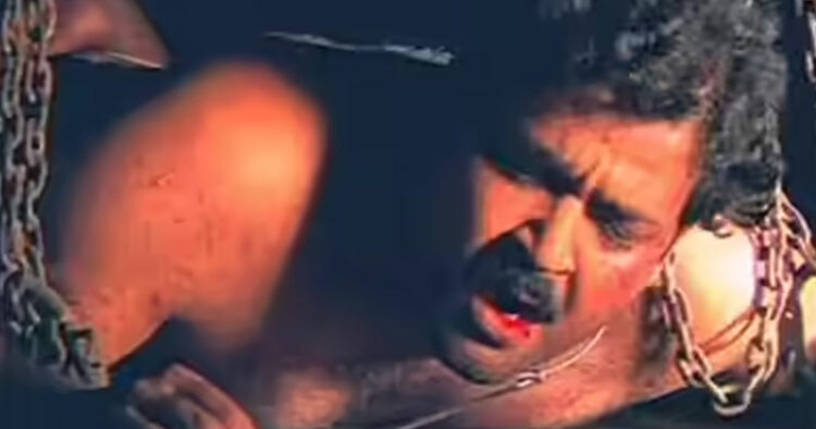 ചിത്രത്തിൽ ഗോവർദ്ധൻ, വില്ലനായ അമരീഷ് പുരി അവതരിപ്പിച്ച ജയിലർ മിർസ ഖാൻ എന്ന കഥാപാത്രത്തിന്റെ കാൽ നക്കുന്ന ഒരു രംഗമുണ്ട്. കാണുന്ന ഏതൊരു പ്രേക്ഷകനും വളരെ അസ്വസ്ഥത തോന്നുന്ന ഒരു സീനായിരുന്നു ഇത്. എങ്ങനെ മോഹൻലാലിനെ പോലെ ഒരു നടൻ ഇത്തരത്തിൽ ഒരു രംഗം ചെയ്യാൻ സമ്മതിച്ചു എന്നുള്ളത് പലരുടെയും മനസ്സിൽ ഉള്ള ഒരു ചോദ്യമായിരിക്കും. ഇതിനുള്ള ഉത്തരം പ്രിയദർശൻ തന്നെ ഒരു അഭിമുഖത്തിൽ നൽകിയിട്ടുണ്ട്. അദ്ദേഹത്തിന്റെ വാക്കുകൾ ഇങ്ങനെ: