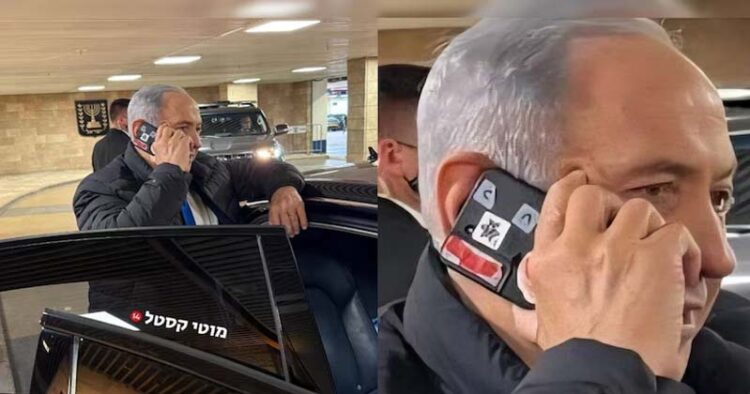 ഇസ്രായേൽ പ്രധാനമന്ത്രി ബെഞ്ചമിൻ നെതന്യാഹുവിന്റെ ഫോൺ ക്യാമറയിൽ ചുവന്ന ടേപ്പ് ഒട്ടിച്ച നിലയിലുള്ള ചിത്രങ്ങൾ സോഷ്യൽ മീഡിയയിൽ വൈറലാകുന്നു. ജെറുസലേമിലെ ഇസ്രായേൽ പാർലമെന്റായ നെസെറ്റിന്റെ (Knesset) ഭൂഗർഭ പാർക്കിംഗിൽ വെച്ച് തന്റെ ആഡംബര കാറിന് സമീപം നിന്ന് ഫോണിൽ സംസാരിക്കുന്ന നെതന്യാഹുവിന്റെ ചിത്രങ്ങളിലാണ് ഈ സുരക്ഷാ മുൻകരുതൽ വ്യക്തമായിരിക്കുന്നത്. ലോകപ്രശസ്ത പോഡ്കാസ്റ്റർ മാരിയോ നവ്ഫൽ ഉൾപ്പെടെയുള്ളവർ ഈ ചിത്രങ്ങൾ പങ്കുവെച്ചതോടെ വലിയ ചർച്ചകൾക്കാണ് തുടക്കമായിരിക്കുന്നത്.