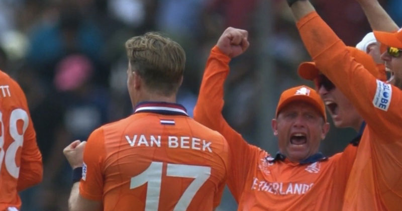 ആദ്യം ബാറ്റ് ചെയ്ത നെതർലൻഡ്സ് നിശ്ചിത ഓവറിൽ 147 റൺസിന് പുറത്തായിരുന്നു. നായകൻ സ്കോട്ട് എഡ്വാർഡ്സ് (37), ബാസ് ഡീ ലീഡി (30), മൈക്കൽ ലെവിറ്റ് (27) എന്നിവർ മികച്ച പ്രകടനം പുറത്തെടുത്തു. പാകിസ്ഥാൻ ബാറ്റിംഗിനിടെ പത്തൊമ്പതാം ഓവറിൽ ലഭിച്ച ക്യാച്ച് അവസരം നെതർലൻഡ്സ് ഫീൽഡർമാർ കൈവിട്ടത് മത്സരത്തിലെ നിർണ്ണായക നിമിഷമായി മാറി. ആ ക്യാച്ച് ലഭിച്ചിരുന്നെങ്കിൽ ഒരുപക്ഷേ ലോകകപ്പിലെ ആദ്യ അട്ടിമറി ഇന്ന് സംഭവിക്കുമായിരുന്നു.