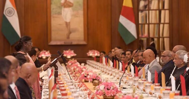 ഇന്ത്യ സന്ദർശനത്തിനെത്തിയ സെഷൽസ് പ്രസിഡന്റ് പാട്രിക് ഹെർമിനിക്ക് രാഷ്ട്രപതി ഭവനിൽ ഊഷ്മള സ്വീകരണമൊരുക്കി രാഷ്ട്രപതി ദ്രൗപദി മുർമു. നയതന്ത്ര ചർച്ചകൾക്കും കരാറുകൾക്കും അപ്പുറം ഇരുരാജ്യങ്ങളും തമ്മിലുള്ള സാംസ്കാരിക ബന്ധം വിളിച്ചോതുന്നതായിരുന്നു രാഷ്ട്രപതി ഭവനിലെ ഔദ്യോഗിക വിരുന്ന് (State Dinner). ഇന്ത്യൻ മഹാസമുദ്രത്താൽ ചുറ്റപ്പെട്ടുകിടക്കുന്ന ഇരുരാജ്യങ്ങളുടെയും തീരദേശ ബന്ധത്തെ ഓർമ്മിപ്പിക്കുന്ന രുചിക്കൂട്ടുകളാണ് വിരുന്നിലെ പ്രധാന ആകർഷണമായി മാറിയത്. ഭാരതത്തിന്റെ പടിഞ്ഞാറൻ, തെക്കൻ തീരപ്രദേശങ്ങളിലെ തനത് വിഭവങ്ങൾ ഉൾപ്പെടുത്തി തയ്യാറാക്കിയ മെനു അതിഥികളുടെ മനം കവർന്നു.