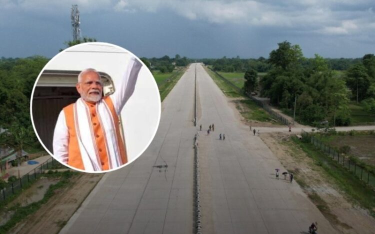 അസമിലെ നാഷണൽ ഹൈവേ 127 ലെ ദിബ്രുഗഡ്-മോറാൻ സെക്ഷനിൽ പുതുതായി നിർമ്മിച്ച എമർജൻസി ലാൻഡിംഗ് ഫെസിലിറ്റിയിൽ ആണ് പ്രധാനമന്ത്രിയുടെ വിമാനവും യുദ്ധവിമാനങ്ങളും ലാൻഡ് ചെയ്യുക. വടക്കുകിഴക്കൻ മേഖലയിലെ ഹൈവേയിൽ നിർമ്മിച്ച ആദ്യത്തെ എയർസ്ട്രിപ്പിന്റെ ഉദ്ഘാടനമാണിത്. ഗുവാഹത്തിയിൽ എത്തിയ ശേഷം പ്രധാനമന്ത്രി മോദി ഒരു സൈനിക വിമാനത്തിൽ ദിബ്രുഗഡിലേക്ക് പറക്കും. തുടർന്ന് ദിബ്രുഗഡ് വിമാനത്താവളത്തിൽ ഇറങ്ങുന്നതിന് പകരം പ്രധാനമന്ത്രിയുടെ വിമാനം പുതുതായി നിർമ്മിച്ച ഹൈവേ എയർ സ്ട്രിപ്പിൽ ആയിരിക്കും ഇറങ്ങുക.