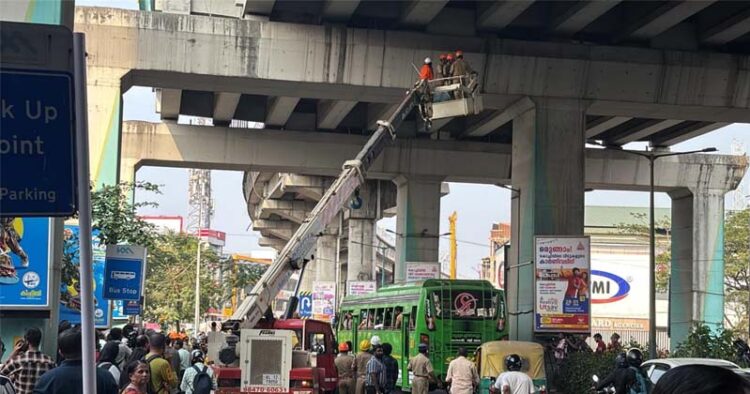 രക്ഷാദൗത്യത്തിനിടെ ഫയർഫോഴ്സിന്റെ ഹൈഡ്രോളിക് ലിഫ്റ്റ് തകരാറിലായത് നിലവിൽ വലിയ പ്രതിസന്ധി സൃഷ്ടിച്ചിരിക്കുകയാണ്. പില്ലറിന് മുകളിലേക്ക് ലിഫ്റ്റ് ഉയർത്താൻ കഴിയാത്തതിനെ തുടർന്ന് ദൗത്യം താൽക്കാലികമായി നിർത്തിവെച്ചിരിക്കുകയാണ്. പകരം മറ്റൊരു വാഹനം എത്തിച്ചാൽ മാത്രമേ പൂച്ചയെ സുരക്ഷിതമായി താഴെയിറക്കാൻ കഴിയൂ. അവശനിലയിലായ പൂച്ചയുടെ ജീവൻ എത്രയും വേഗം രക്ഷിക്കാനുള്ള തീവ്രശ്രമത്തിലാണ് അധികൃതർ.